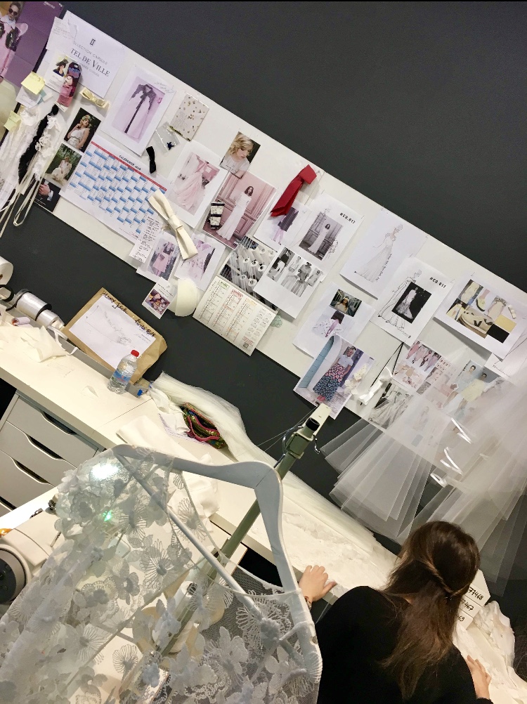 Un détail dans l'atelier qui m'a énormément plu c'est le mur des des remerciements présents dans l'atelier, des cartes par centaines avec des couples qui se sont mariés habillés en « maison Tesson » un cadre qui vend réellement du rêve et qui franchement donne envie de se marier même pour les plus retissant d'entre nous face à cette idée !